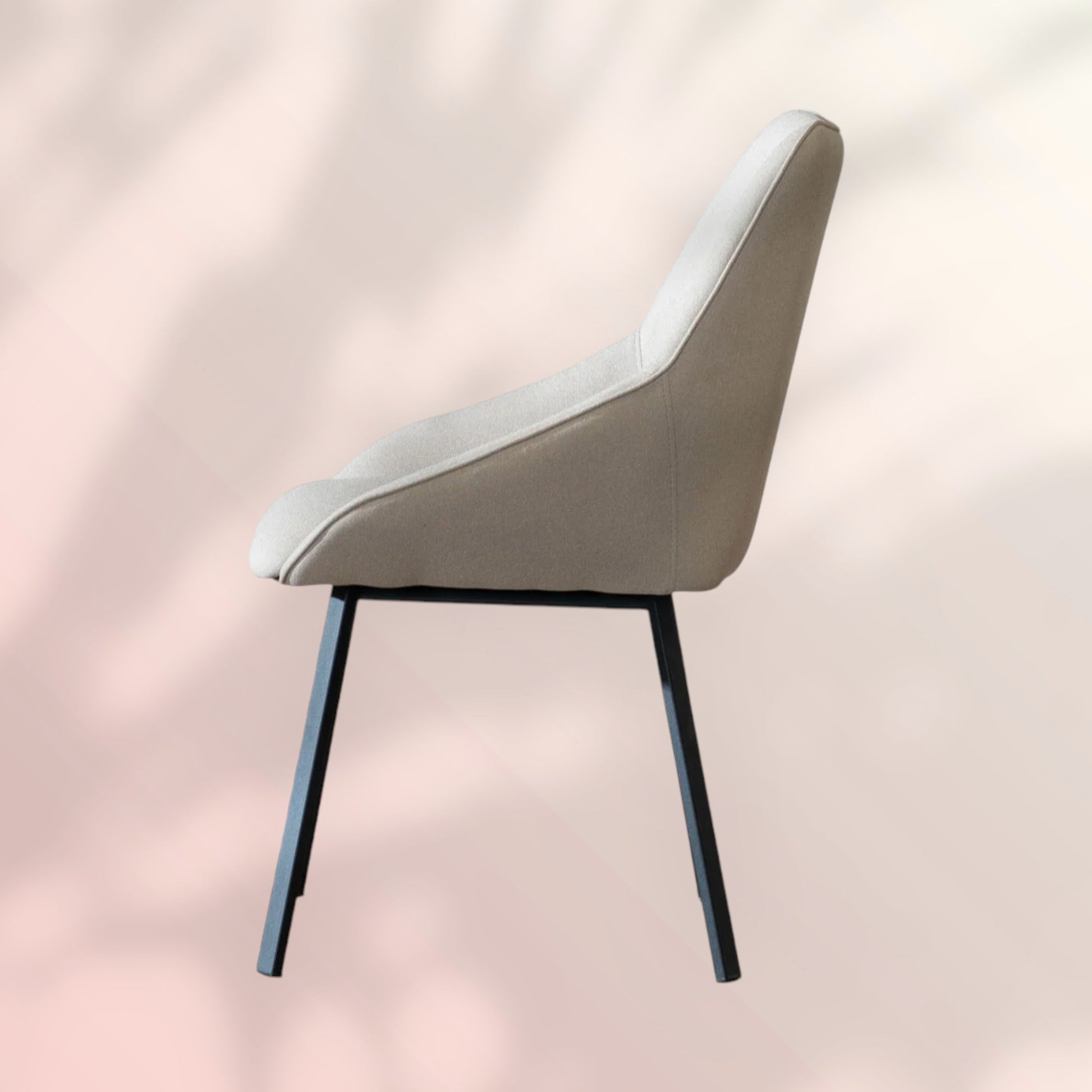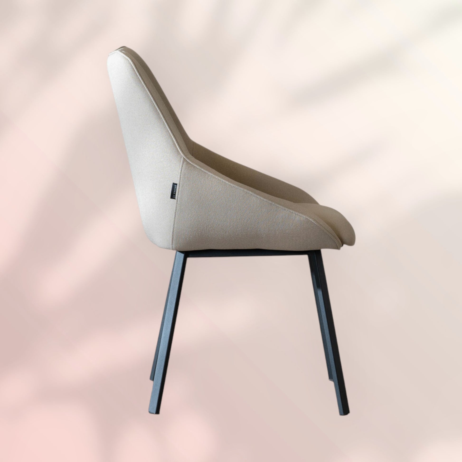 Met zijn strakke lijnen en minimalistische design, biedt de Lova eetkamerstoel een perfecte balans tussen comfort en esthetiek. De zachte, gerecyclede stof voelt heerlijk aan en is tegelijkertijd sterk en duurzaam.