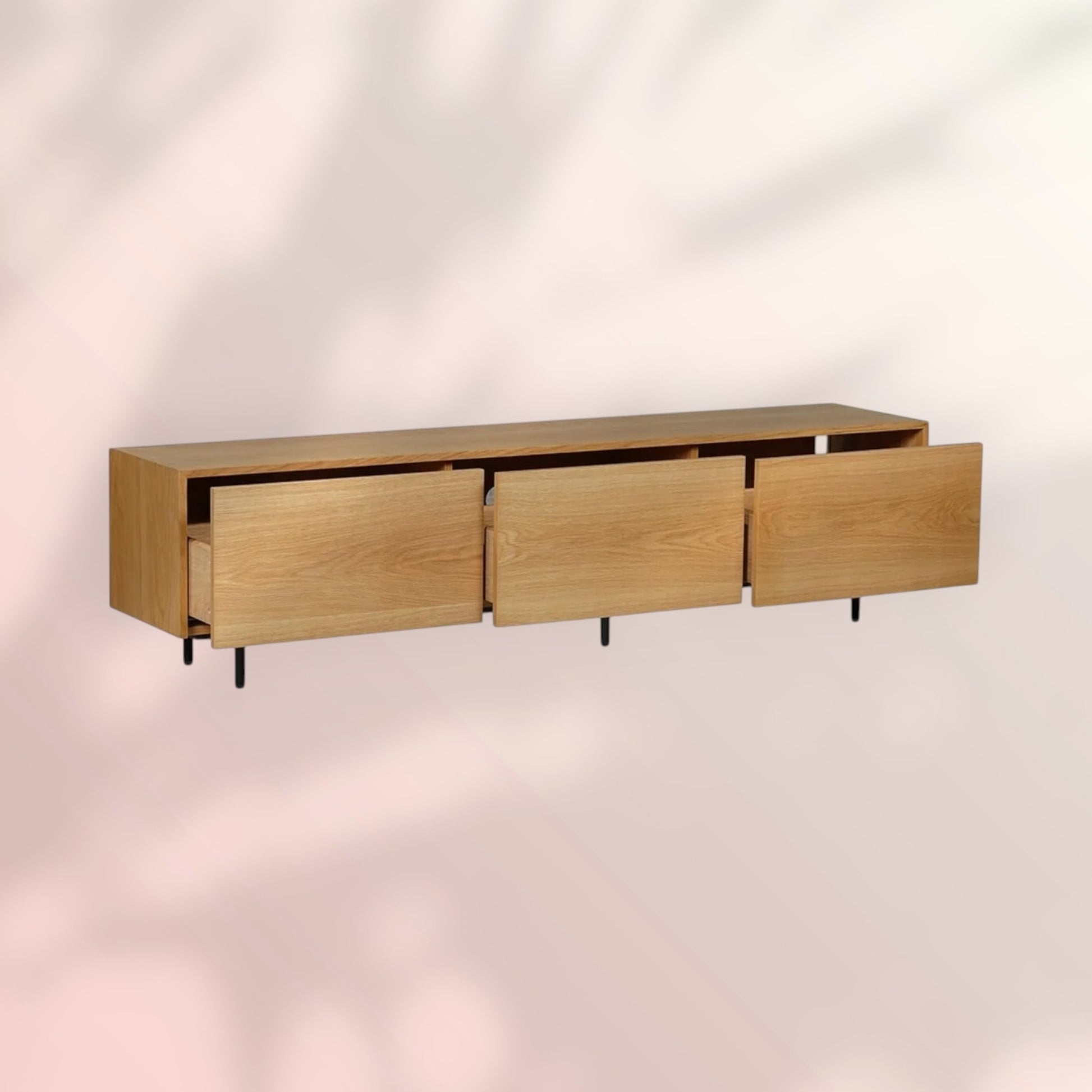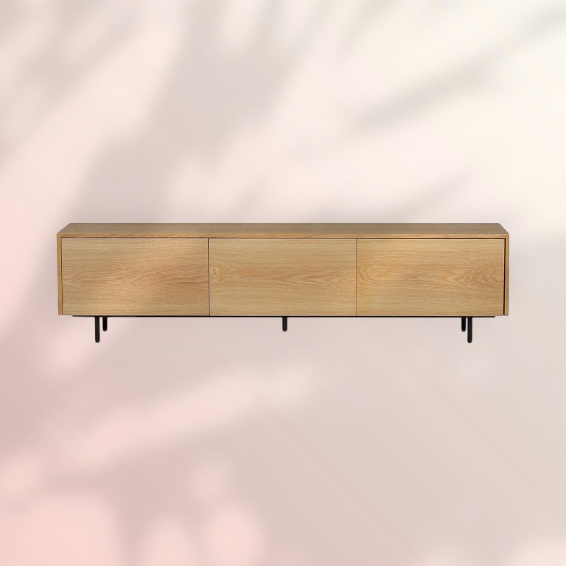 Het Tv-meubel Thomas is vervaardigd uit hoogwaardig blank eikenhout, wat zorgt voor een duurzame en robuuste constructie. De natuurlijke uitstraling van het hout voegt warmte toe aan je interieur en maakt het meubel veelzijdig inzetbaar bij verschillende decoratiestijlen.