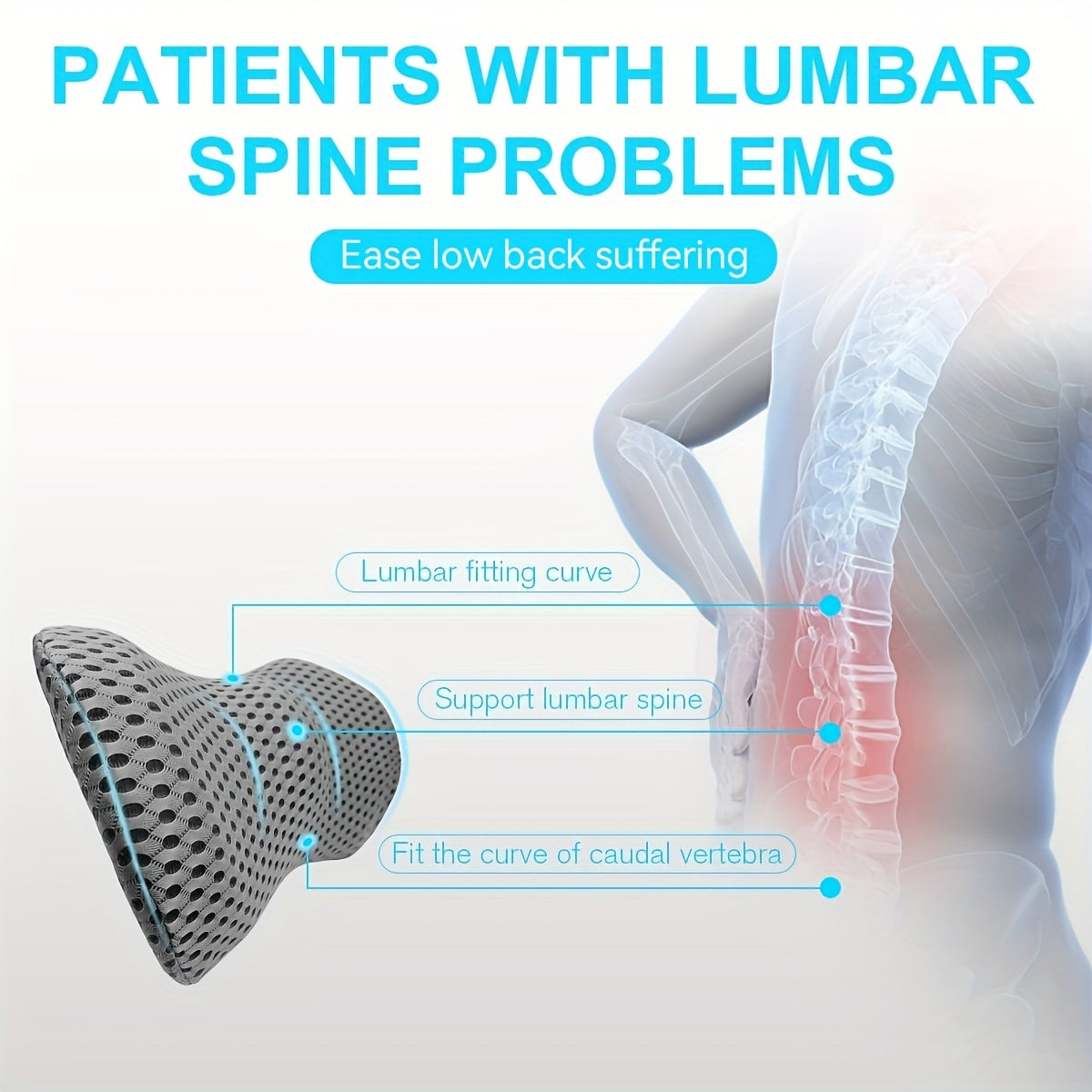 De 1pc Lumbar Support Pillow biedt gerichte onderrugondersteuning met geheugenfoam, ontworpen voor wie lange tijd zit achter een bureau of in de auto. Dit kussen helpt de onderrug te ontspannen en comfort te bieden tijdens werk, reizen en rust.