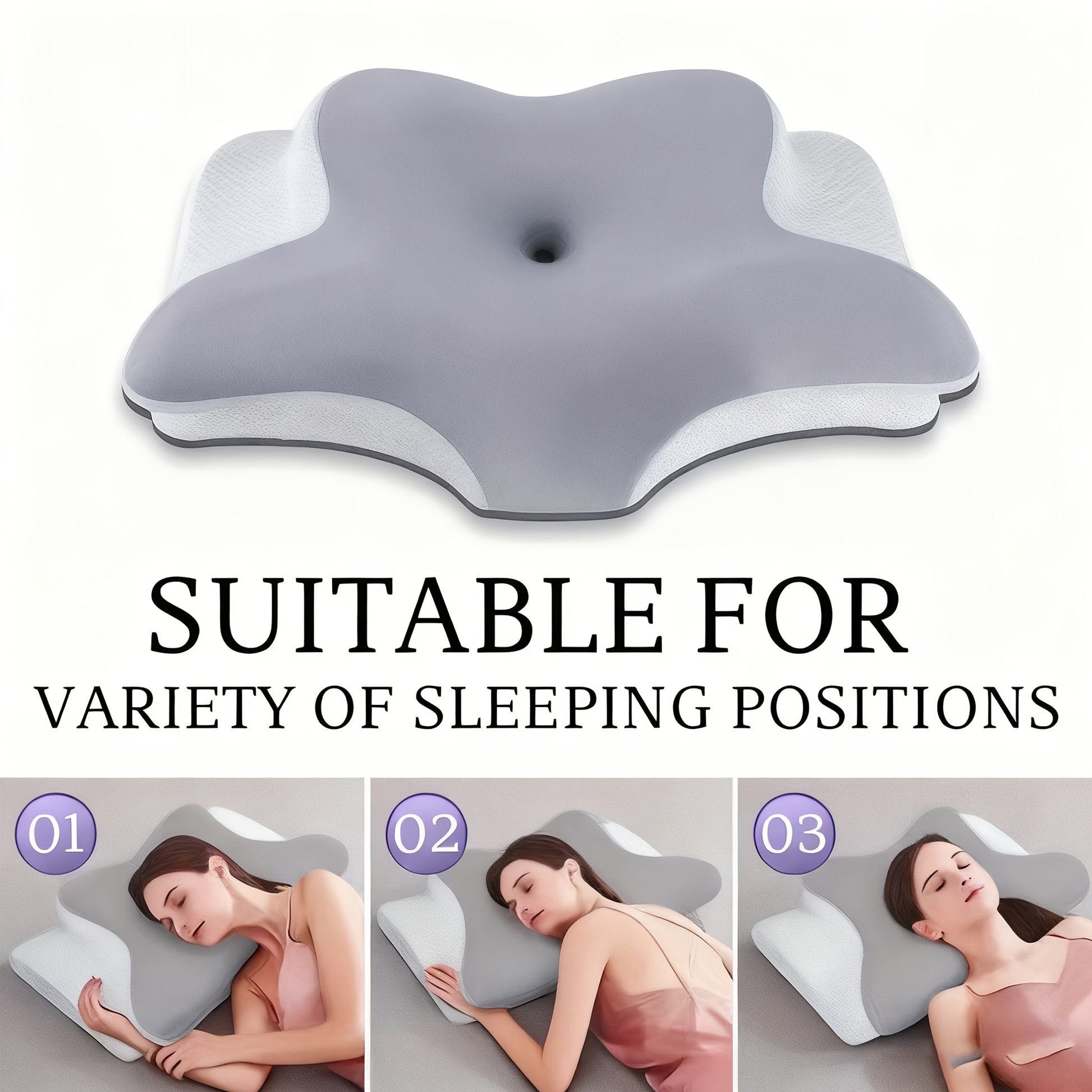 - Vulling: 100% memory foam die zich aanpast aan de contouren van hoofd en nek voor gerichte ondersteuning en comfort.