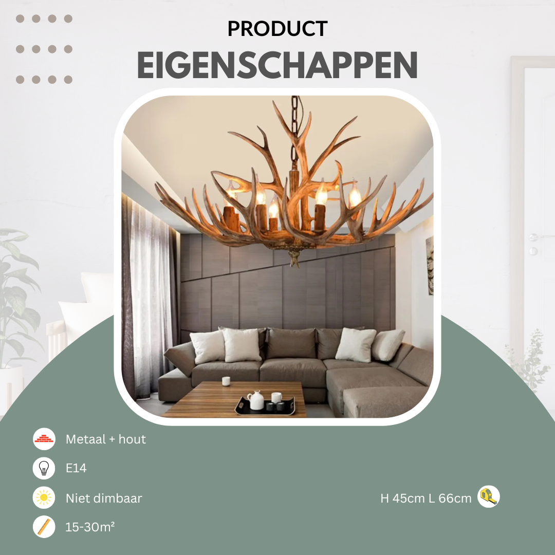 De kroonluchter blijft de 'creme de la creme' onder de verlichting. Deze kroonluchter met een gewei heeft 6 lampen. Door de ambachtelijke details in kleur en afwerking past deze hanglamp perfect in een landelijke en antieke omgeving. Haal deze ultieme eye-catcher nu in huis en geef jouw interieur die sfeervolle twist die het nodig heeft!
